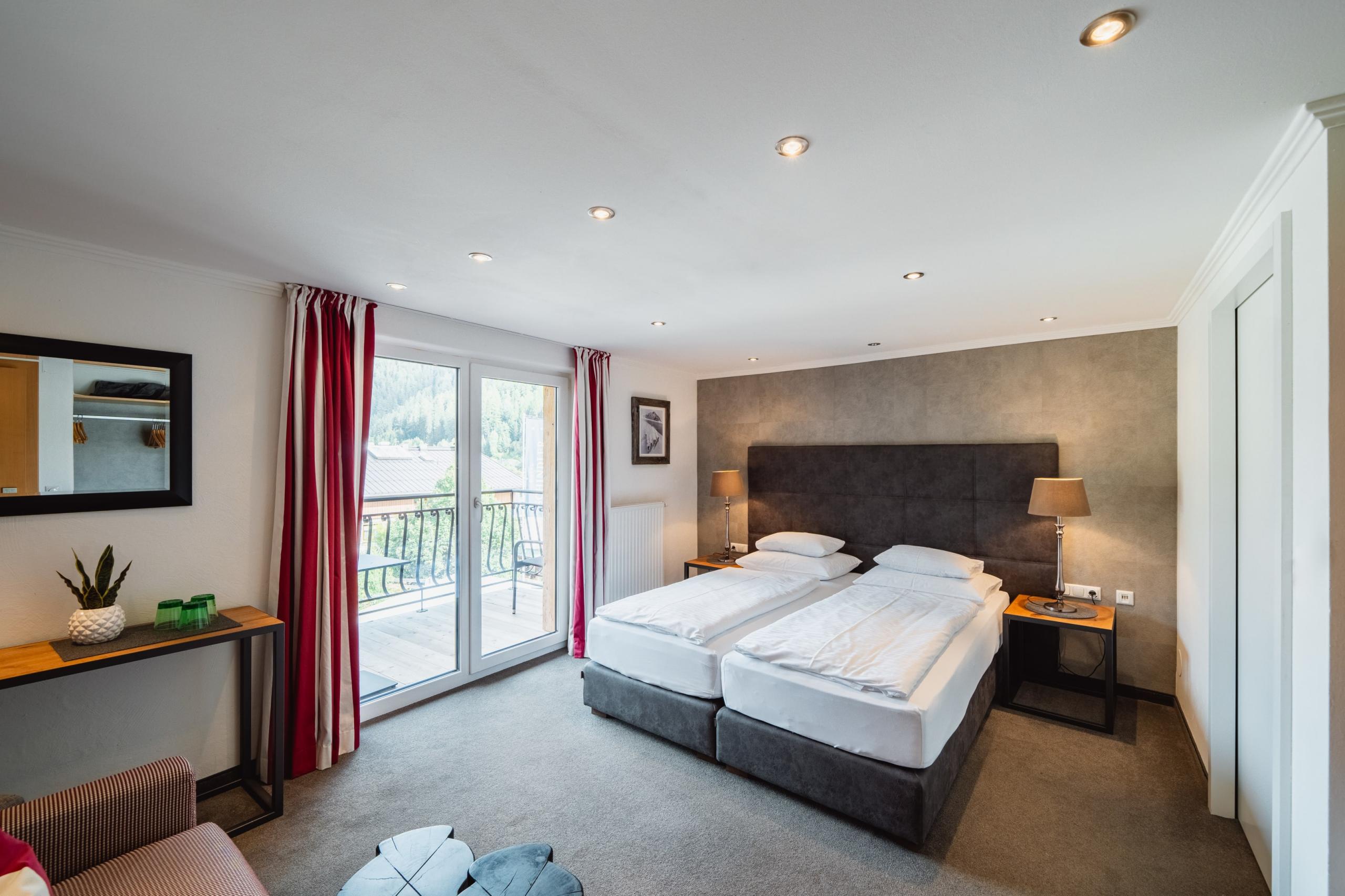 Doppelzimmer 19 - 35 m² für 2 Personen mit Dusche oder Bad, 1 Zusatzperson möglich auf ausziehbarem Schlafsofa, WC, Kosmetikspiegel, Haarfön, Twin Betten möglich, Balkon mit Sitzgelegenheit, Flatscreen TV, Safe, Radio mit Bluetooth Funktion, kostenfreies WLan, Telefon. Nachttisch - Steckdosen mit USB und MICRO USB, Kosmetikprodukte von Rituals (Duschgel & Handseife), Bademantel, Slipper, Wärmeflasche, Näh - Set