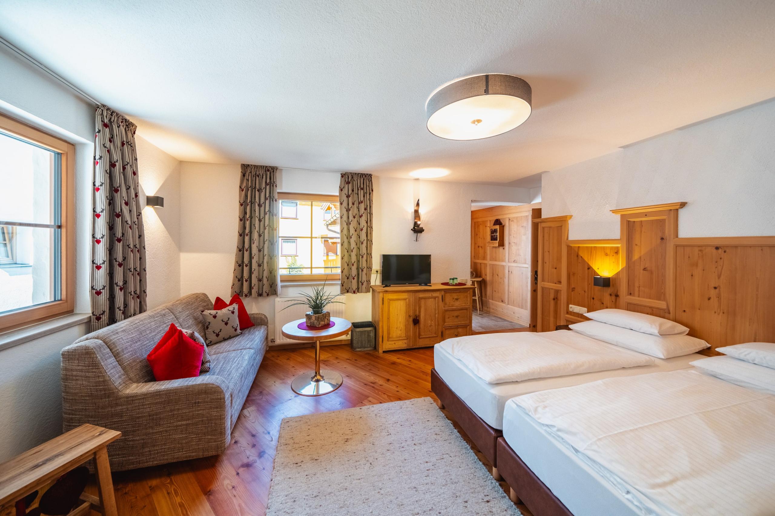 Doppelzimmer 19 - 35 m² für 2 Personen mit Dusche oder Bad, 1 oder 2 Zusatzperson möglich auf ausziehbarem Schlafsofa, WC, Kosmetikspiegel, Haarfön, Twin Betten möglich, Balkon mit Sitzgelegenheit, Flatscreen TV, Safe, Radio mit Bluetooth Funktion, kostenfreies WLan, Telefon. Nachttisch - Steckdosen mit USB und MICRO USB, Kosmetikprodukte von Rituals (Duschgel & Handseife), Bademantel, Slipper, Wärmeflasche, Näh - Set